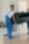 Two Rhenus employees unpacking and setting up furniture in a living space.