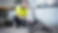 A person wearing a yellow safety vest is sitting at a desk and talking on the phone.