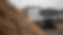 Rhenus Logistics truck driving through a site with bulk material in the foreground.